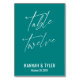 Bold, simple, contemporary, elegant. This design complements a growing collection of unique pieces that are eye-catching and distinctive. Use the template fields to change place-holder details and make the design your own. Other colours and styles are available in this collection. Here I've featured a gorgeous font for the header and number and your details at the bottom appear in a modern, bold font. Options are available for additional table numbers. You may change the background to any colour you wish.