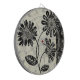 © Daphne Brissonnet / Wild Apple. Black and white image of flowers in full bloom. The image comes with a floral patterned background in black and off-white colours.
