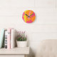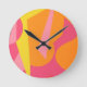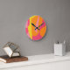 This contemporary clock design pairs abstract artistry with function. Vivid orange and pink shapes radiate with energy, transforming timekeeping into a visual statement. A fusion of bold color, geometric form, and modern design for stylish interiors.