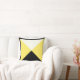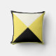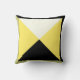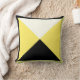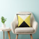 Contemporary Mojo pillow with four large, centred triangles in bright yellow, white, and black, bordered in black and tan. The reverse side is a flipped version of the front for continuity of the border colours.