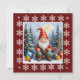 Celebrate the season with this contemporary gnome design framed by red borders and delicate Christmas snowflakes. The cheerful gnome, dressed in a classic red hat, sits in a snowy forest among ornaments, candy canes, and a decorated tree, capturing the joy of a whimsical Christmas.