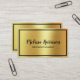 Contemporary, and simply elegant gold metallic business cards have a black stripe around the edges. Name is in script with business title or profession below. Reverse side has address, phone, e-ml address and website address in an all caps lettering. Truly a stunning and eye catching business card!