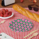 The contemporary green & pink geometric circle shape trendy colour palette for modern party events.