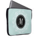 Trendy laptop sleeve with mint blue floral wreath and personalised monogram.