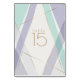 Contemporary Modern Geometric Stripes Table Number Card created by The BarefootBride™ Colours are: Mint Green , Smokey Violet and Cloud White with thin gold accent stripes. A nice geometric abstract design for the modern wedding. All Text is customisable.