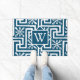 Contemporary Monogram greek key modern design blue Doormat