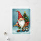 Add a bit of Christmas humour to your wishes with this contemporary postcard! The illustration shows a funny gnome with a wheelbarrow containing a beautifully decorated Christmas tree with baubles. The colourful, fantasy and charming design makes this card an ideal choice for people who love unique patterns.
