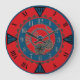 Contemporary Red and Blue Steampunk Wall Clock. Funky clock in red and blue with steampunk gears. Great for basement rec rooms, cottages, themed rooms, kids bedrooms. We have various colours available including more moderate shades in olive, linen, clay, navy, brown in a similar design.