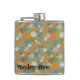 The flask itself is fine. It’s a cheap flask, obviously bought in bulk, however am prepared to overlook that. Given that it is a personalized item, I would have liked to have seen gift boxing instead of the generic packaging. Terrible printing, and/or quality. It’s a cheap, tacky vinyl. It is not cut straight and is also applied in a way that it is overhanging the bottom, causing the glue to catch on items and it will eventually roll and tear, damaging the wrap.