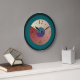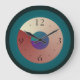 A contempory clock design with a black green border , and centre of lemon tan and purple green. This atmospheric clock is available in round and square shapes. Are you looking for something unique? Orientcourt has clock colours and designs to suit most decor.