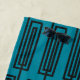 This beach towel has a Kandinsky inspired design of sets of four rectangles made by a continuous black line repeating across the design on a field of teal. If you like the design but prefer different colours, message me.