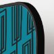 This pickleball paddle has a Kandinsky inspired design of sets of four rectangles made by a continuous black line repeating across the design on a field of teal. If you like the design but prefer different colours, message me.