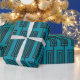 This wrapping paper has a Kandinsky inspired design of sets of four rectangles made by a continuous black line repeating across the design on a field of teal. If you like the design but prefer different colours, message me.
