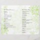 Graphic flowers outlined in white against a soft green make a beautiful statement on this wedding program flyer. Similar flowers are repeated as watermarks on the reverse. A sentimental look for a special day. Available in alternate colours with matching products.