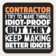 Funny Contractor Sayings "Contractor I Try To Make Things Idiot Proof But They Keep Making Better Idiots". Grab this Funny Contractor design as a funny gifts for an awesome mum, dad or friend.