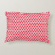 The image features a rectangular pillow with a red and white pattern that stands out due to its high contrast and repetitive design. This pattern gives the pillow a modern and stylish appearance, making it a versatile accessory that could complement various decor styles.