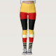 Repeating stripes with bright colours like mustard yellow with dark red and black background. Try out this leggings and leave your comments.