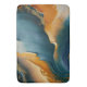 This refined abstract artwork captures the quiet luxury of fluid motion, where deep ocean blues meet molten gold in a slow, elegant dance. Smooth, flowing shapes ripple across the composition like polished stone, liquid metal, or underwater currents, creating a sense of depth and natural harmony. The gold accents appear organically embedded within the blue tones, adding warmth, richness, and a subtle sense of opulence.