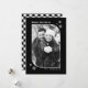 Theme Parties' modern minimalist holiday photo card design features clean black backdrop for your favourite holiday photo set in a geometric rectangle shape with two rounded corners. The reverse side is an iconic plaid pattern / buffalo check in matching black and white. Change "Happy Holidays" to your favourite holiday greeting. #Christmas #Holidays #ChristmasCards