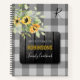 Rustic country trendy farmhouse style personalised recipe organiser cookbook blank journal with barn wood, black and white buffalo check gingham pattern, and watercolor sunflower bouquet. ++++++++++ Personalise it with your personal or family monogram, name and your text! +++++++++ It can be a modern personal recipe book for your kitchen, a family cookbook, or a beautiful keepsake gift for a bride, friend, or chef, for weddings, bridal shower, birthday or Christmas.