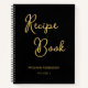 Girly Elegant Minimalist Black and Gold Monogram Name Custom Personalised „Recipe Book” Script Notebook. These design featuring text: „Recipe Book” in a huge hand lettered font script typography, your full name on black and gold. These are easy to customise and can be used as a Recipe Planner, Recipe Journal, Cookbook and more. Also great stylish for a house warming gift to first home owners, for birthday, mother’s day, wedding, bridal shower and for anyone who loves glam, elegant style.