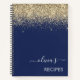 Cookbook Recipe Gold Navy Blue Glitter Monogram Notebook