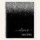 Cookbook Recipe Silver Black Glitter Monogram Notebook