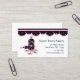 Business card for bakeries, bakers, cookies. Design features pink and black polka dot cookie jar, rolling pink and flower shaped pink cookies with with black and pink polka dot top border.