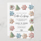 Invite guests to your Christmas cookie exchange party with this sweet and festive watercolor invitation featuring a full cookie border. Surrounding the design are colourful holiday cookies, including blue and red frosted snowflakes, green Christmas tree cookies, gingerbread snowflakes, and detailed cookies decorated with poinsettias and holly—adding a cosy, handmade charm to your invite.