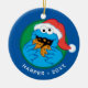 Celebrate the holidays the cookie way! This festive ceramic ornament features a close-up of everyone's favourite blue monster, Cookie Monster, wearing a Santa hat and happily munching on cookies. Set against a deep blue and green background, this design is perfect for capturing a sweet moment. The ornament is fully customisable to include any name and the year making it an ideal personalised Christmas gift, yearly keepsake, or stocking stuffer for any Sesame Street or cookie fan!