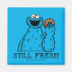 Cookie Monster holding his favourite snack including the phrase "still fresh". © 2021 Sesame Workshop. www.sesamestreet.org
