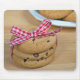 Gingham ribbon wrapped around a stack of chocolate chip cookies.