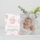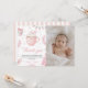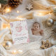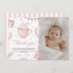 Cozy “Cookies & Cocoa” birthday photo thank you card featuring a pink hot cocoa mug and soft pastel winter accents, with space to add your personal photo. Perfect for sending warm appreciation after a sweet, charming celebration. Editable and printable.