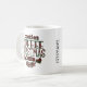 This festive coffee mug features text image "Cookies Coffee Christmas Cheer" in red and green plaid. Add your name along the side to personalise. Perfect for the holiday season.