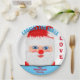 Cookies for Santa. Light blue snow capped typography. Insert Love Family Last Name. Jolly Santa Claus with red white hat. Leave plate out for Santa on Christmas Eve with special cookies. Original Artwork © 2015 TamiraZDesigns.
