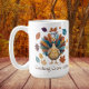 Bring fun to the kitchen this holiday with the Cooking Crew Thanksgiving Mug, featuring a cheerful turkey in a chef’s hat surrounded by colourful autumn leaves. Personalised with the year, this festive mug is perfect for family and friends who love to cook together on Thanksgiving. A thoughtful and playful gift for the holiday chef or kitchen crew, ideal for sipping coffee, tea, or cocoa while preparing the feast.