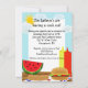 The weather is great and it's time for outdoor cookouts! This colourful invitation features a watermelon, hotdog, hamburger, ketchup and mustard under a bright sun. A great theme for birthdays, family reunions and gatherings. Original vector art by Night Owl's Menagerie, 2010.