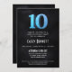 Our one-of-a-kind 10th birthday party invitation has a cool, blue 3D age sitting atop a black starfield sky on the front and back. An awesome birthday invitation for an awesome birthday.