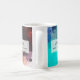 A personalised mug - with a fun and modern abstract design. Paint splotches, splashes and splatters in turquoise blue, white, orange and black and navy blue. Text says: must. have. coffee. Funny.