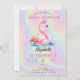 Cool Adorable Pink Flamingos Holographic Invitation