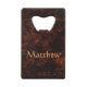 A cool and amazing credit card bottle opener, this design features a fiery bronze colour as a background.