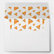 Cool and fun pizza slices pattern on custom envelope colour - unique stationery for foodies, restaurateurs, pizzerias.. Juicy digital art pizza with crunchy crust, cheese, salami, champignon mushrooms, olives and a sprinkle of oregano.
