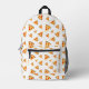 Cool and fun pizza slices pattern on white Printed Backpack. Cool fashion accessory bag for all. Pizza pattern unique gift for foodies, restaurateurs, pizzerias.. Juicy vector made pizza with crunchy crust, cheese, salami, champignon mushrooms, olives and a sprinkle of oregano.