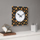 Cool and fun pizza slices pattern on black and white clock face. Juicy vector made pizza with crunchy crust, cheese, salami, champignon mushrooms, olives and a sprinkle of oregano.