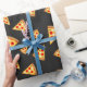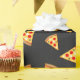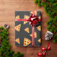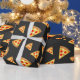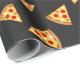 Cool and fun pizza slices pattern on dark grey - unique gift wrap for foodies, restaurateurs, pizzerias.. Juicy vector made pizza with crunchy crust, cheese, salami, champignon mushrooms, olives and a sprinkle of oregano.