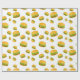 Cool and fun yummy burger pattern white Wrapping Paper. Cool and fun burger pattern custom Gift Wrapping Supplies. Yummy vector illustration made with toasty sesame bun with meat patty, salad, tomatoes and cheese.