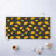 Cool and fun taco pattern on dark grey background. Yummy vector illustration made with toasty tortilla with meat, salad, tomatos and cabbage.
