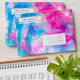 This modern and cool design is perfect for the summer months. It features an artsy, trendy, and modern pink, blue, and teal green tie-tye pattern on a simple white background. It's fashionable, fun, and unique!