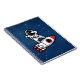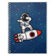 This fun design features a cartoon astronaut confidently standing on a bright red rocket.