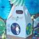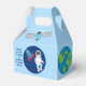 A cool outer space astronaut themed party favour box for a kid's birthday. Features an awesome child astronaut next to a rocket ship in the galaxy. The sides are decorated with planets, spaceships, and the planet Earth. Customise with your thank you message for a galaxy themed party favour package.